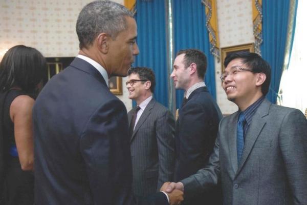 Johannes Marliem saat bersalaman dengan Barack Obama
