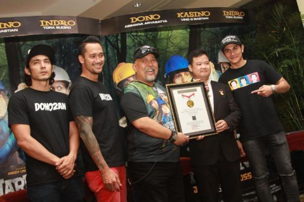 Jakarta - Pemeran film Warkop DKI Reborn: Jangkrik Boss Part 2, meraih dua Rekor MURI atas kategori jumpa fans, dan nonton film secara estafet terbanyak dalam sehari.