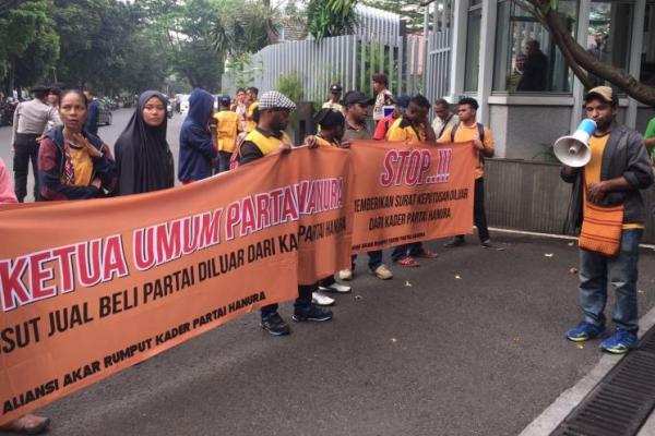 Sebelumnya, sejumlah massa dari Aliansi Akar Rumput Partai Hanura (AARPH) melalukan unjuk rasa didepan gedung City Tower, Jakarta, Senin (4/9/2017). Mereka menuding Ketua Tim Desk Pilkada DPP Hanura terlibat politik uang dalam memberikan rekomendasi calon bupati Jhon Richard Banua yang merupakan Ketua DPC Demokrat Jaya Wijaya di Pilkada kabupaten Jaya Wijaya Papua 2018.