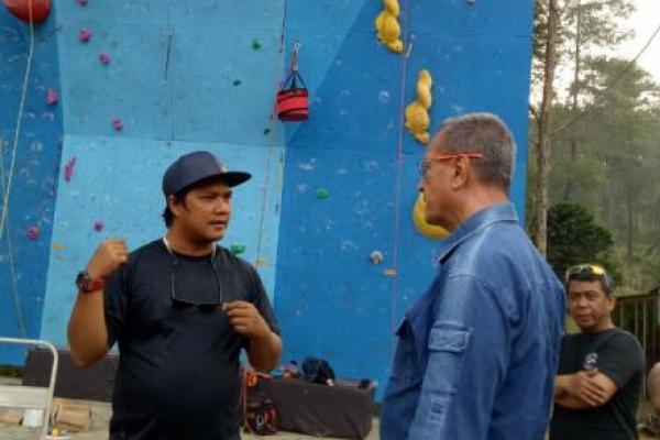 Wakil Deputi I Inasgoc Joko Pramono diterima Manajer Venue Panjat Tebing Asian Games 2018 Rudy Fitriano saat meninjau venue test event di Cikole