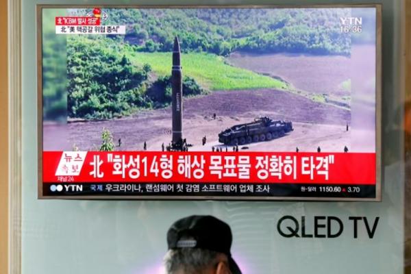 Media Korea Selatan yang menyiarkan peluncuran rudal di Korea Utara (Foto: Reuters)