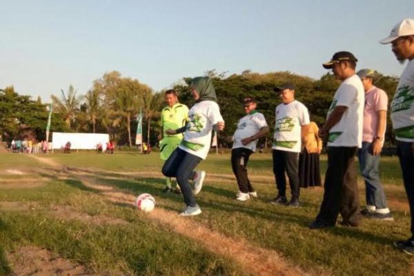 Soppeng - Staf Khusus Menteri Pemuda dan Olahraga (Menpora) Bidang Komunikasi dan Kemitraan Anggia Ermarini melakukan tendangan kick off Gala Desa di Kabupaten Soppeng, Sulawesi Selatan, Kamis (12/7) pagi. Bertempat di Stadion H.A. Wana Laburawung, Watansoppeng, tendangan kick off tersebut menjadi penanda dibukanya Gala Desa di kabupaten yang unggul dengan hasil pertaniannya ini.