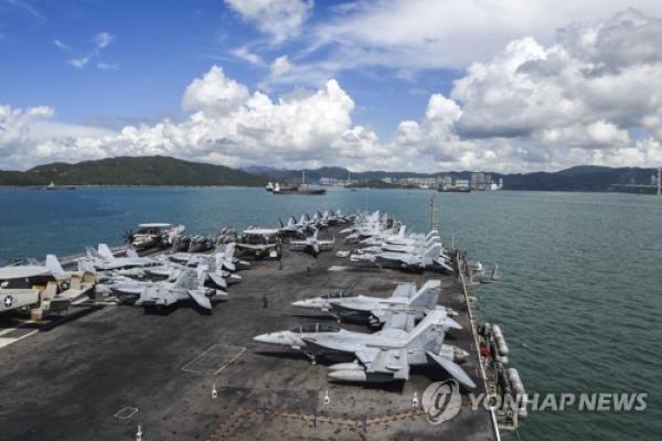 Kapal perang terbesar Angkatan Laut Amerika Serikat di Asia, dengan awak 5.000, berlayar sejauh 100 mil (160,93 km), dan meluncurkan hampir 90 pesawat tempur F-18 Super Hornet dari deknya, di hadapan pulau-pulau Korea Selatan.