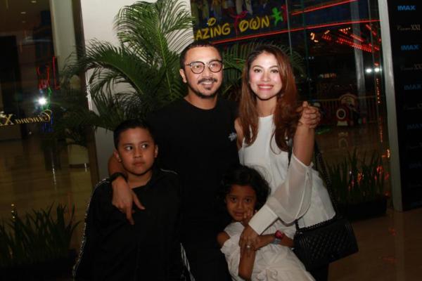 Giring Ganesha, vokalis band Nijie bersama Chyntia Riza dan kedua anaknya ( foto jurnas.news-Munadi)