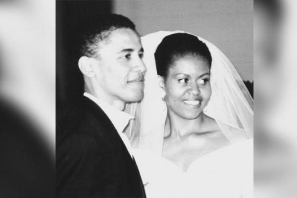 Foto hitam dan putih, yang tampaknya diambil pada pernikahannya di 1992 (Foto: @MichelleObama)