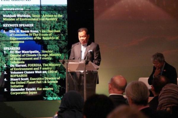 Hal tersebut diungkapkannya dalam sambutan yang dibacakannya di forum COP ke-23 Climate Change, Bonn, Jerman, Jumat (10/11/2017).Menurutnya, DPR RI hadir untuk memberikan dukungan atas perjuangan Delegasi RI, dengan mendorong agar negara maju merealisasikan bantuan pendanaan, teknologi dan capacity building dalam rangka kegiatan mitigasi dan adaptasi terkait perubahan iklim."Selanjutya, kami sampaikan beberapa program dan kegiatan yang telah ditindak lanjuti Parlemen RI pasca COP ke-21 Tahun 2015 di Paris dan COP ke-22 Tahun 2016 di Marrakech,” ujar Roem Kono dalam siaran persnya baru-baru ini. Pada kesempatan itu, Roem yang memimpin delegasi Parlemen Indonesia di ajang tersebut menjelaskan bahwa beberapa program dan kegiatan yang telah ditindak lanjuti DPR RI tentunya sesuai dengan tugas dan fungsi parlemen.Diantaranya adalah meratifikasi hasil COP ke-21 di Paris dengan melakukan pengesahan Paris Agreement to The United Nations Framework Convention on Climate Change, kedua mengoptimalkan pengawasan atas pelaksanaan Undang-Undang tentang Perlindungan Lahan Pertanian Pangan Berkelanjutan, serta Undang-Undang tentang Konservasi Tanah dan Air.Selain itu terkait pengelolaan dan perlindungan kawasan hutan, saat ini DPR bersama pemerintah sedang merevisi beberapa Undang-Undang, diantaranya Undang-Undang tentang Konservasi Sumber Daya Alam Hayati dan Ekosistemnya serta Undang-Undang tentangKehutanan. DPR juga mendukung pemerintah dalam rangka percepatan pemulihan kawasan dan pengembalian fungsi hidrologis gambut. Kerusakan lahan gambut ini akibat kebakaran hutan dan lahan. Sehingga perlu upaya-upaya kegiatan restorasi gambut secara khusus, sistematis, terarah, terpadu dan menyeluruh, termasuk pemanfaatannya oleh masyarakat adat sekitar hutan.Tidak hanya itu, DPR juga ikut mendorong peningkatan anggaran pemerintah untuk beberapa kegiatan, seperti reforma agraria seluas 9 juta hektar dan perhutanan sosial, pencegahan dan penanggulangan kebakaran hutan, serta penegakan hukum dalam pemberantasan perusakan hutan (terutama illegal logging), rehabilitasi hutan dan lahan, serta restorasi lahan gambut, serta perlindungan kawasan konservasi dan pemberdayaan masyarakat desa adat sekitar hutan.Indonesia juga telah menyampaikan kontribusi ke global dengan penurunan emisi sebesar 29 persen melalui sumberdaya sendiri, dan 41 persen bila ada bantuan dari luar negeri.Dalam sambutannya, politisi dari Fraksi Partai Golkar ini juga berharap pada COP ke-23 di Bonn, yakni terkait isu penting terkait transparancy framework, further guidance untuk NDC terutama mitigasi, adaptation communication.DPR juga mengharapkan peran negara maju seperti, Amerika Serikat, negara-negara Eropa, Jepang, China dan Korea serta negara donor lainnya untuk merealisasikan dukungan pendanaan, teknologi dan capacity building, dengan skema yang disepakati bersama.Bahkan Roem juga berharap untuk memasukkan kepentingan Indonesia lainnya dalam COP Decision, terutama yang akan diadopsi pada COP ke-24 mendatang. Seperti dorongan di sektor kehutanan dan kelautan sebagai bagian dari perbaikan perubahan iklim global, solidaritas universal juga harus menjadi semangat dari COP ke-23 Bonn untuk menyelesaikan urgensi masalah perubahan iklim dunia.
