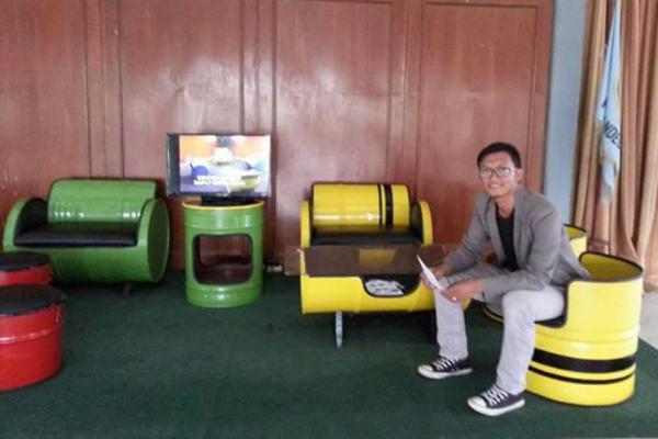 “Kami memulai sebuah projek seni dengan memanfaatkan limbah drum yang kami sulap menjadi berbagai barang interior dengan nilai estetis dan ekonomi tinggi seperti sofa, meja, tong sampah dan kursi,” ujar pemuda yang lahir dari ayah asal Cirebon dan Ibu dari Banten ini.