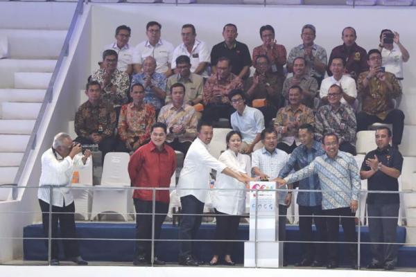 Menpora Imam Nahrawi bersama Menko PMK Puan Maharani, Menteri PUPR Basuki Hadimuljono,Mensesneg Pratikno, Ketua INASGOC Erick Thohir dan Ketua Umum PB PRSI, Anindya Bakrie mendampingi Wakil Presiden Jusuf Kalla membuka Indonesia Open Aquatic Championship (IOAC) 2017 di Stadion Aquatic, Gelora Bung Karno, Senayan, Jakarta, Selasa (5/12) malam. Pembukaan ini ditandai dengan penekanan tombol sirine oleh Wakil Presiden Jusuf Kalla.(foto:egan/kemenpora.go.id)