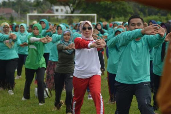 “Ibu-ibu kita harus hidup sehat dengan berolahraga minimal 30 menit setiap harinya, pemerintah sudah punya program namanya Gerakan Masyarakat Hidup Sehat oleh karena itu kita harus hidup sehat salah satunya dengan berolahraga,” katanya dalam sambutannya.