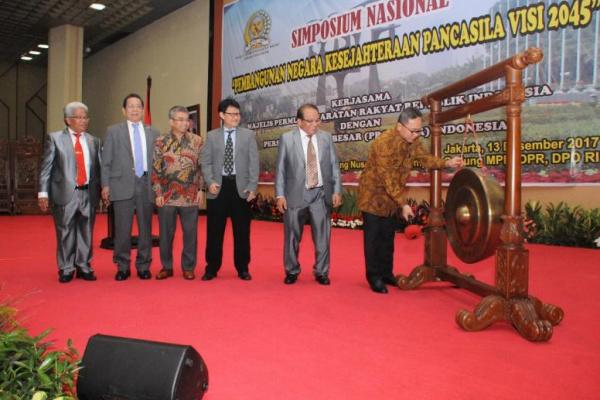 Pada hari itu MPR bekerja sama dengan Persatuan Guru Besar Indonesia (Pergubi) mengadakan kerja sama menggelar Simposium Nasional dengan tema `Pembangunan Negara Kesejahteraan Pancasila Visi 2045`.
