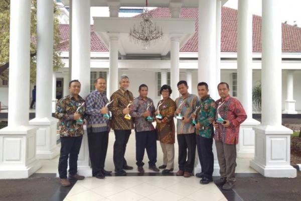 Penghargaan POPER Emas diserahkan oleh Wakil Presiden Republik Indonesia Jusuf Kalla kepada Azwar Satrya Muhammad, Water Resources, Nature & Process Technology Director Danone AQUA, mewakili pabrik AQUA Mambal Kecamatan Abiansemal, Kota Badung, Propinsi Bali di Istana Wapres Jakarta, Senin (18/12/2017) disaksikan oleh Menteri LHK Siti Nurbaya Bakar.