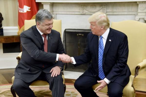 Presiden Ukraina Poroshenko berjabat tangan dengan Donald Trump
