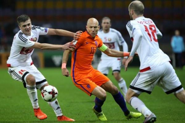 Winger timnas Belanda, Arjen Robben (tengah)