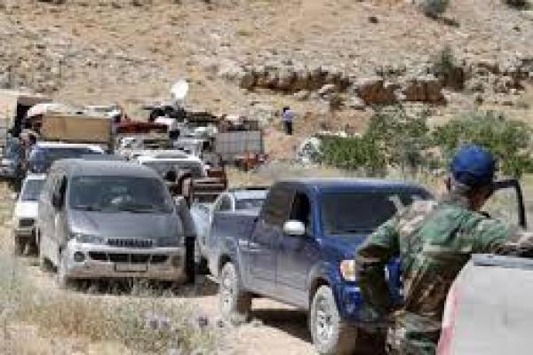 Anggota Hizbullah mengawal konvoi pengungsi Suriah di kota perbatasan Arsal, Lebanon, 12 Juli 2017 (Foto: Reuters)