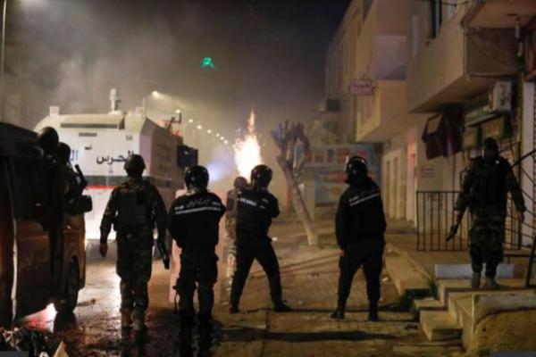 Tunisia, jurnas.news - Ratusan pemuda bentrok dengan polisi di kota-kota di seluruh Tunisia pada Senin (18/1) malam, melemparkan batu dan bom bensin di ibu kota saat pasukan keamanan menggunakan gas air mata dan meriam air untuk mencoba memadamkan kerusuhan.
