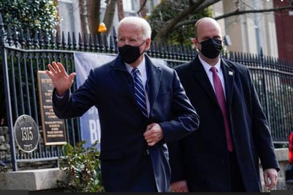 Presiden AS Joe Biden memberi isyarat saat dia meninggalkan Gereja Katolik Tritunggal Mahakudus pada hari Minggu. (Foto: Reuters)