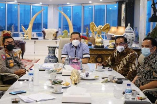 Ketua MPR, Bambang Soesatyo menerima Kepala Korps Lalu Lintas Polri, Irjen Pol Istiono, di Jakarta, Jumat (19/2/21). (Foto: MPR)