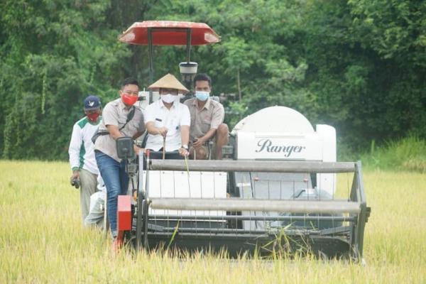 Panen padi menggunakan alat mesin pertania. (Foto: Ist)
