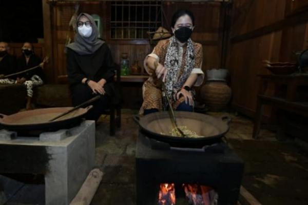 Ketua DPR, Puan Maharani saat mengunjungi Sanggar Genjah Arum di kawasan Desa Wisata Osing, yang berlokasi di Desa Kemiren, Kecamatan Glagah, Banyuwangi, Senin (1/3).