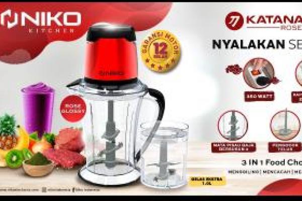 Jakarta, jurnas.news - PT. Niko Elektronik Indonesia merilis variant produk terbarunya, food chopper dengan tipe Katana Pro Gold dan Katana Next Rose. Food chopper ini berfungsi untuk mencincang bahan makanan, seperti sayuran, daging atau menghaluskan bumbu, membuat jus buah dan minuman segar lainnya.