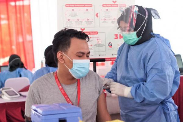 Salah satu karyawan bank DKI mendapat suntikan vaksinasi. (Foto: Ist)