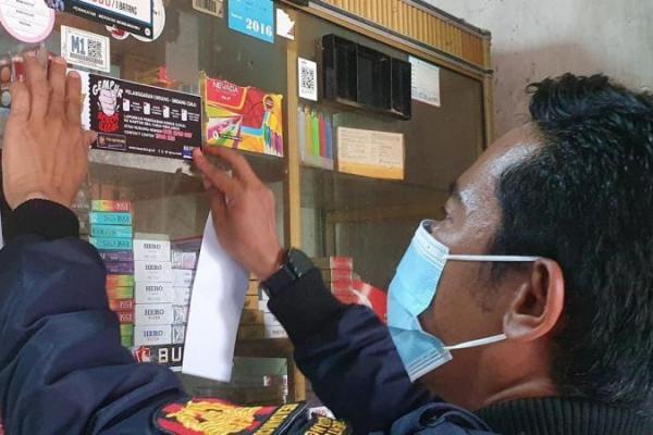 Petugas dari Bea Cukai menempelkan stiker sosialisasi Gempur Rokok Ilegal.