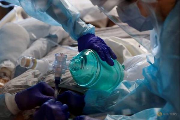 Petugas perawatan kritis memasukkan pipa endotrakeal ke pasien positif penyakit coronavirus (COVID-19) di unit perawatan intensif (ICU) di Rumah Sakit Memorial Sarasota di Sarasota, Florida, 11 Februari 2021. Shannon Stapleton/Reuters