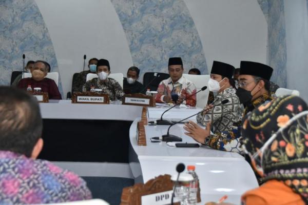Wakil Ketua MPR, Jazilul Fawaid menjadi pembicara pada Focused Group Discussion (FGD) Panen Raya Porang Nasional 2021 bertajuk Porang Komoditas Nusantara Menembus Pasar Dunia di Pendopo Pemkab Trenggalek, Jawa Timur, Selasa malam (24/8/2021). (Foto: MPR)